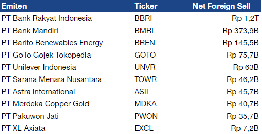 Top 10 Net Foreign Sell IHSG